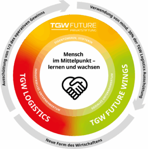 Heute vereint die TGW Future Privatstiftung Industrielles und Soziales Unternehmertum unter einem Dach und bildet, mit ihren beiden Stiftungsbereichen, die TGW Welt. In ihre Zentrum steht die Stiftungsphilosophie mit ihrem Leitsatz: „Mensch im Mittelpunkt – lernen und wachsen“. Sie ist der Rahmen für unternehmerisches Handeln, gesellschaftliche Verantwortung und die langfristige Weiterentwicklung der TGW Welt.